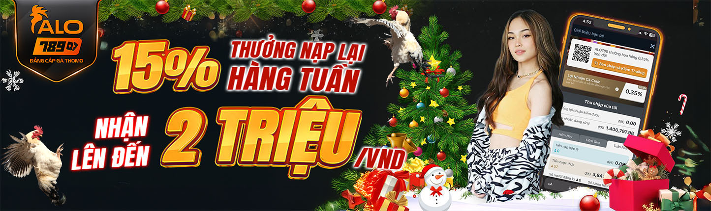 Cơn sốt Thưởng nạp lại hàng tuần 15% lên đến 2,000,000 VND tại tất cả sản phẩm của ALO789