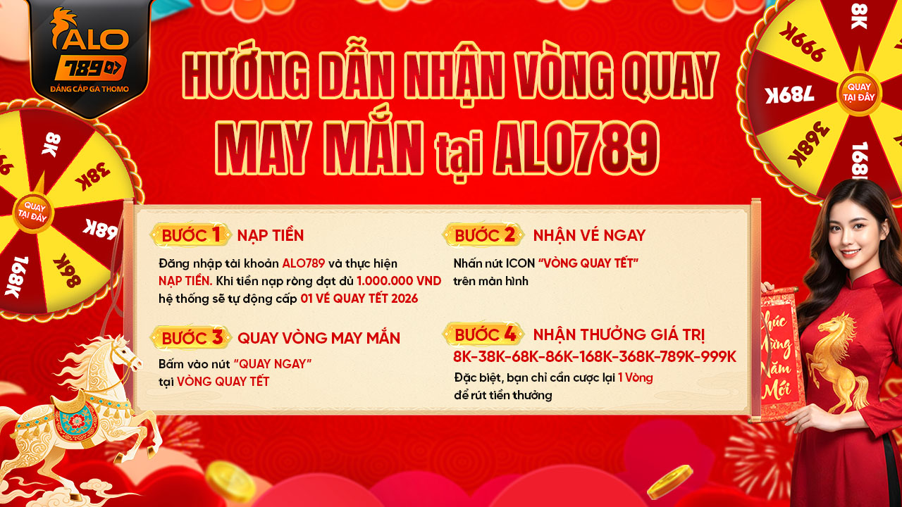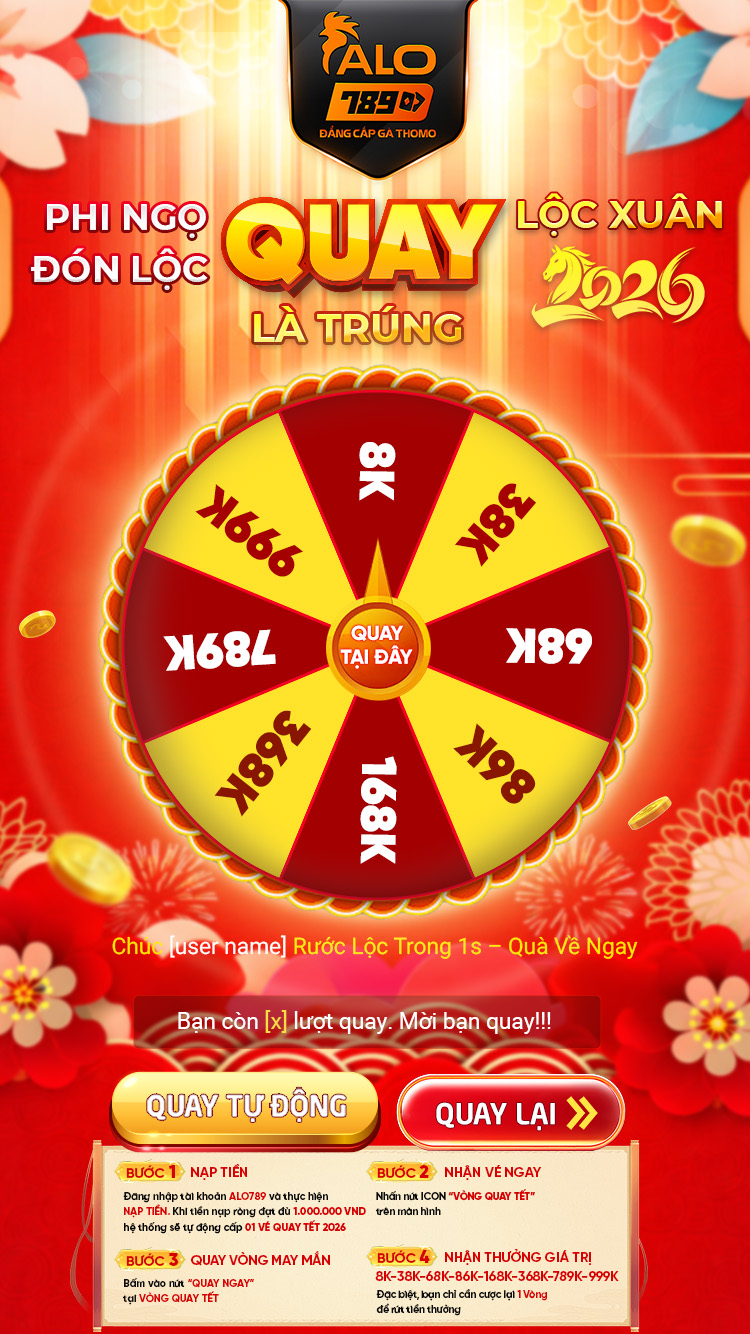 Mùa tiệc đón năm mới đã đến, hãy để ALO789 đồng hành cùng bạn với chương trình “Phi Ngọ Đón Lộc  – QUAY LÀ TRÚNG – Lộc Xuân 2026”. Chỉ cần nạp tiền, bạn đã có vé quay, và chắc chắn có quà trong tay.
